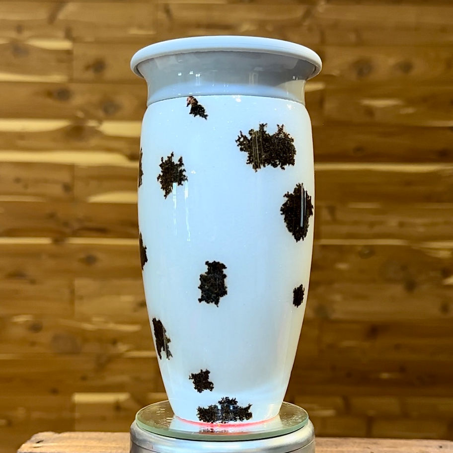 This sippy cup designed with glitter and given cow print patches, then sealed with epoxy. It can be personalized in any way you desire.